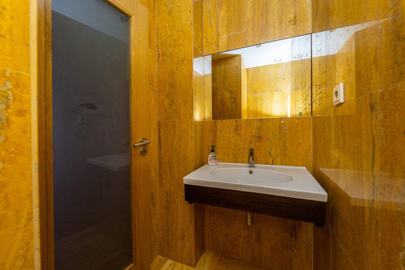O apartamento tem de área bruta privativa m2, desenvolvendo-se em ampla sala comum com acesso direto à cozinha, estando esta completamente equipada e beneficiando de lavandaria independente. Na zona social temos ainda um wc de serviço. Na zona íntima encontramos 2 quartos com roupeiros embutidos e wc completo de apoio e temos também 1 suite.